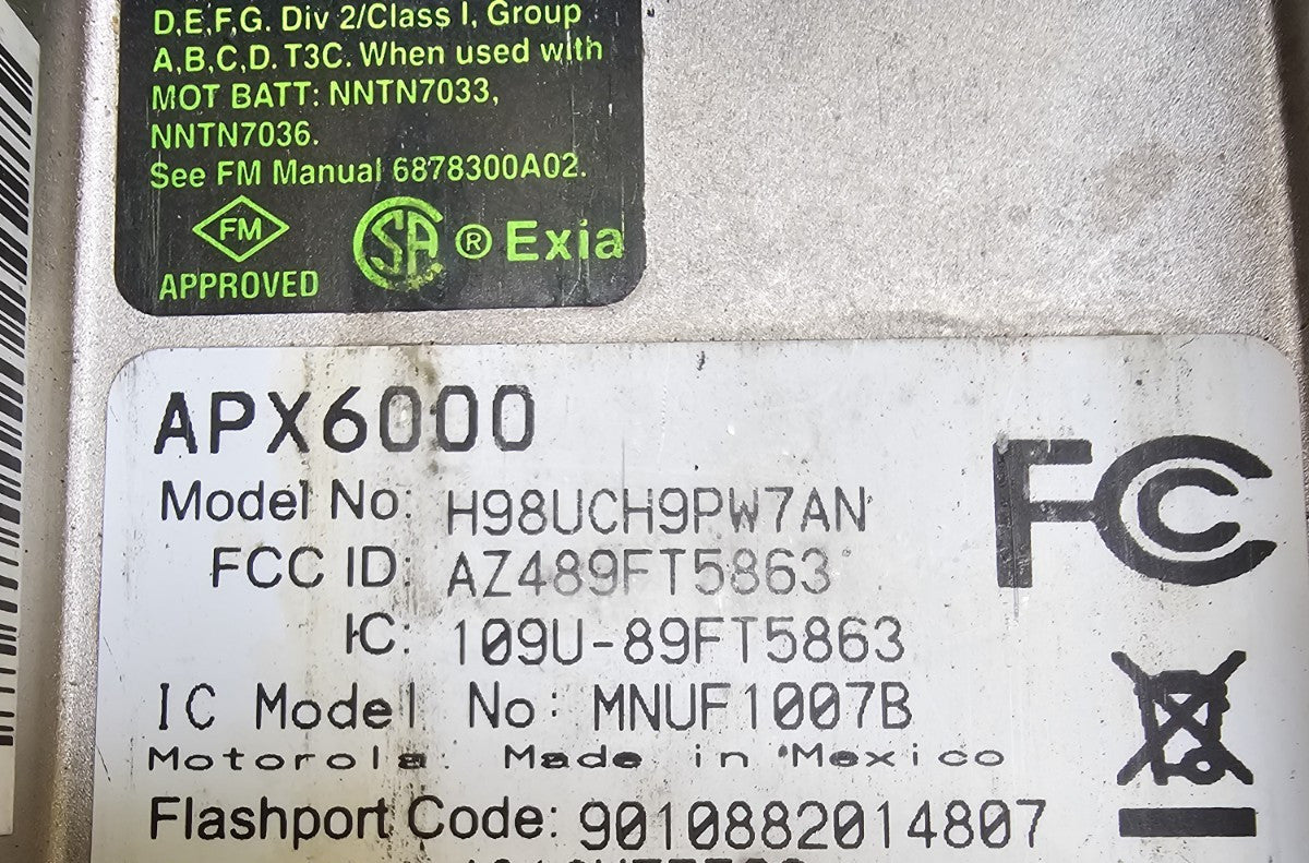Motorola APX6000 P25 800 MHz Two Way Radio with Charger H98UCH9PW7AN
