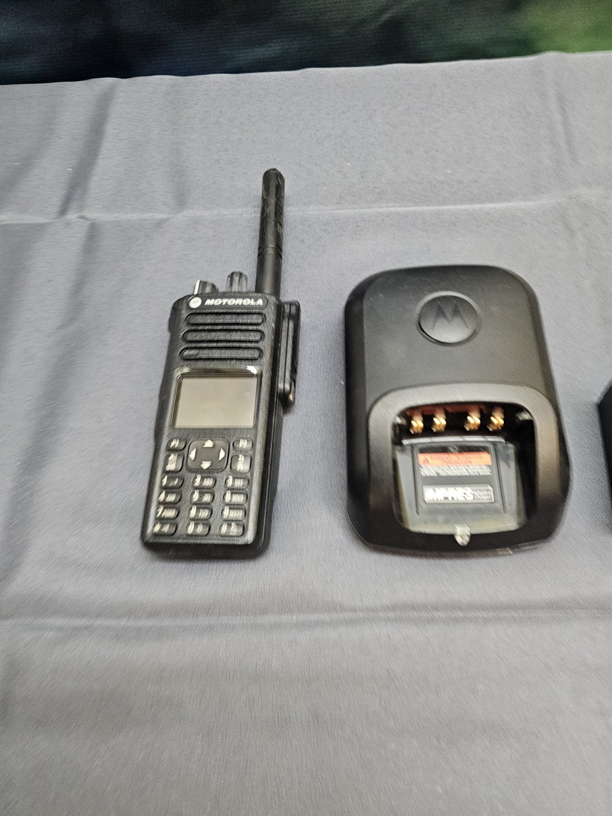 Comes as pictured in working used condition. Radio pictured is the exact you will receive. Radio, antenna, and charger - NO battery. We do not program. Thanks for your interest.