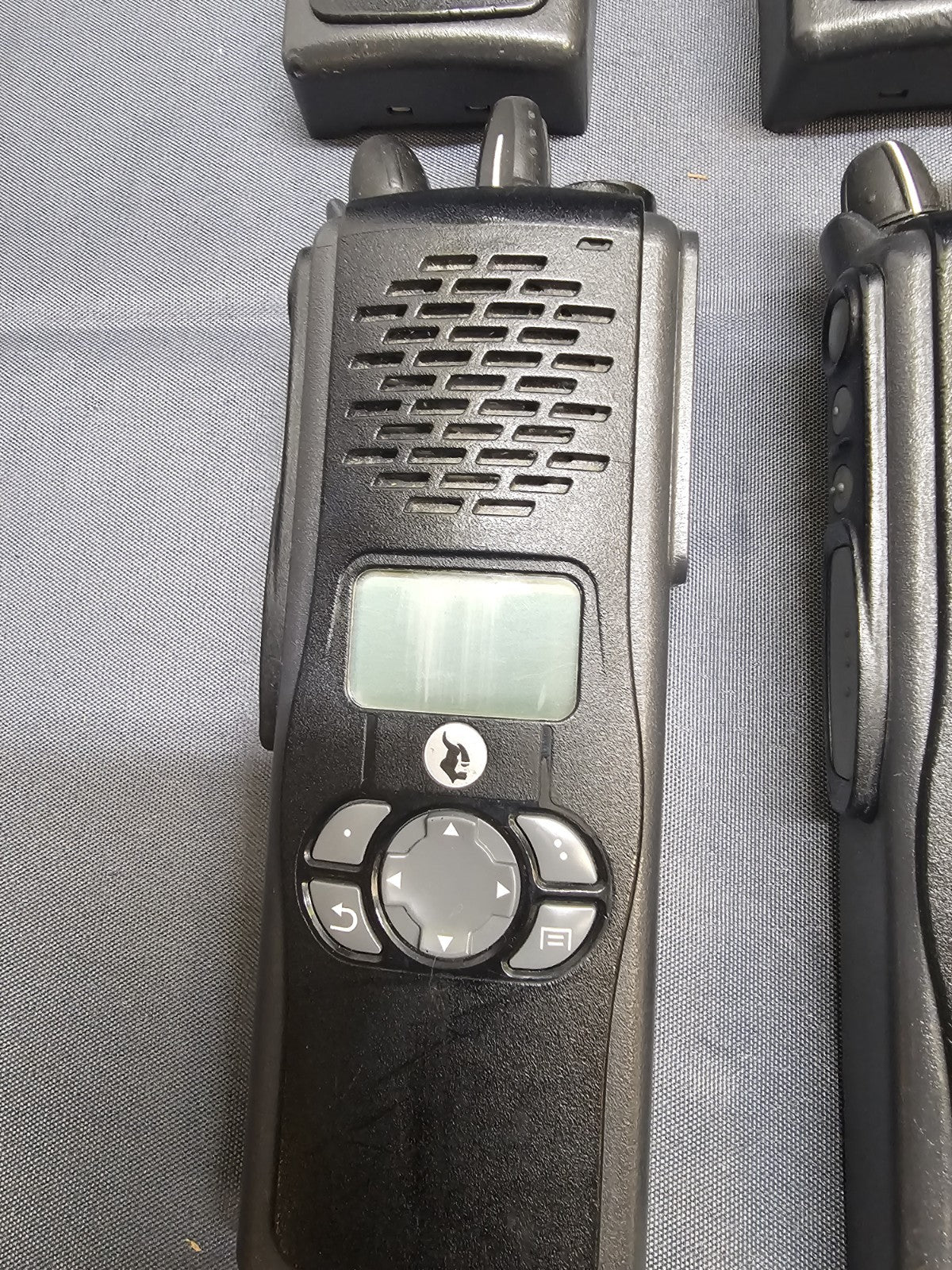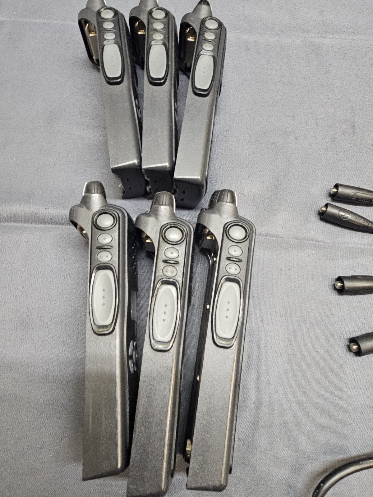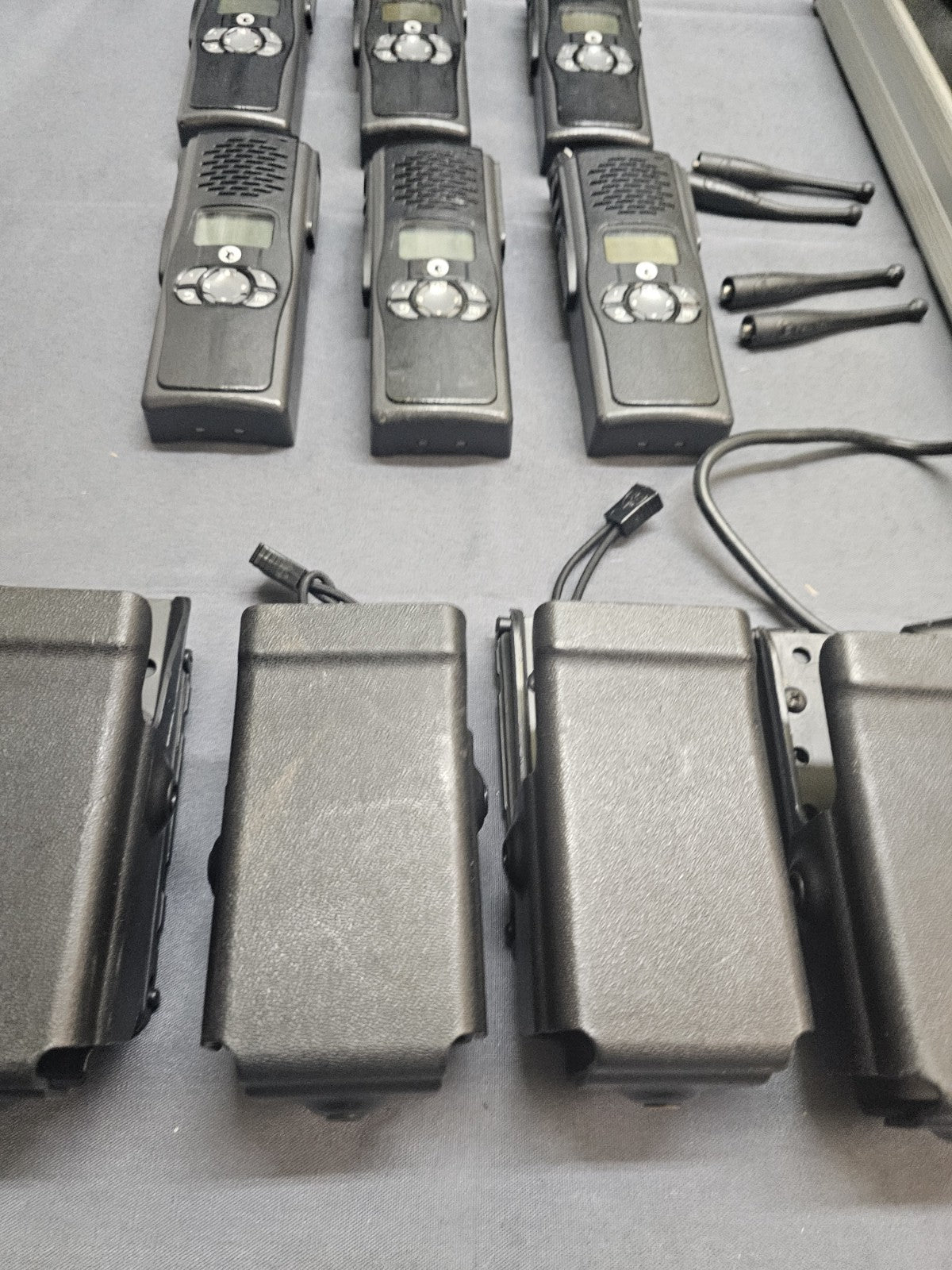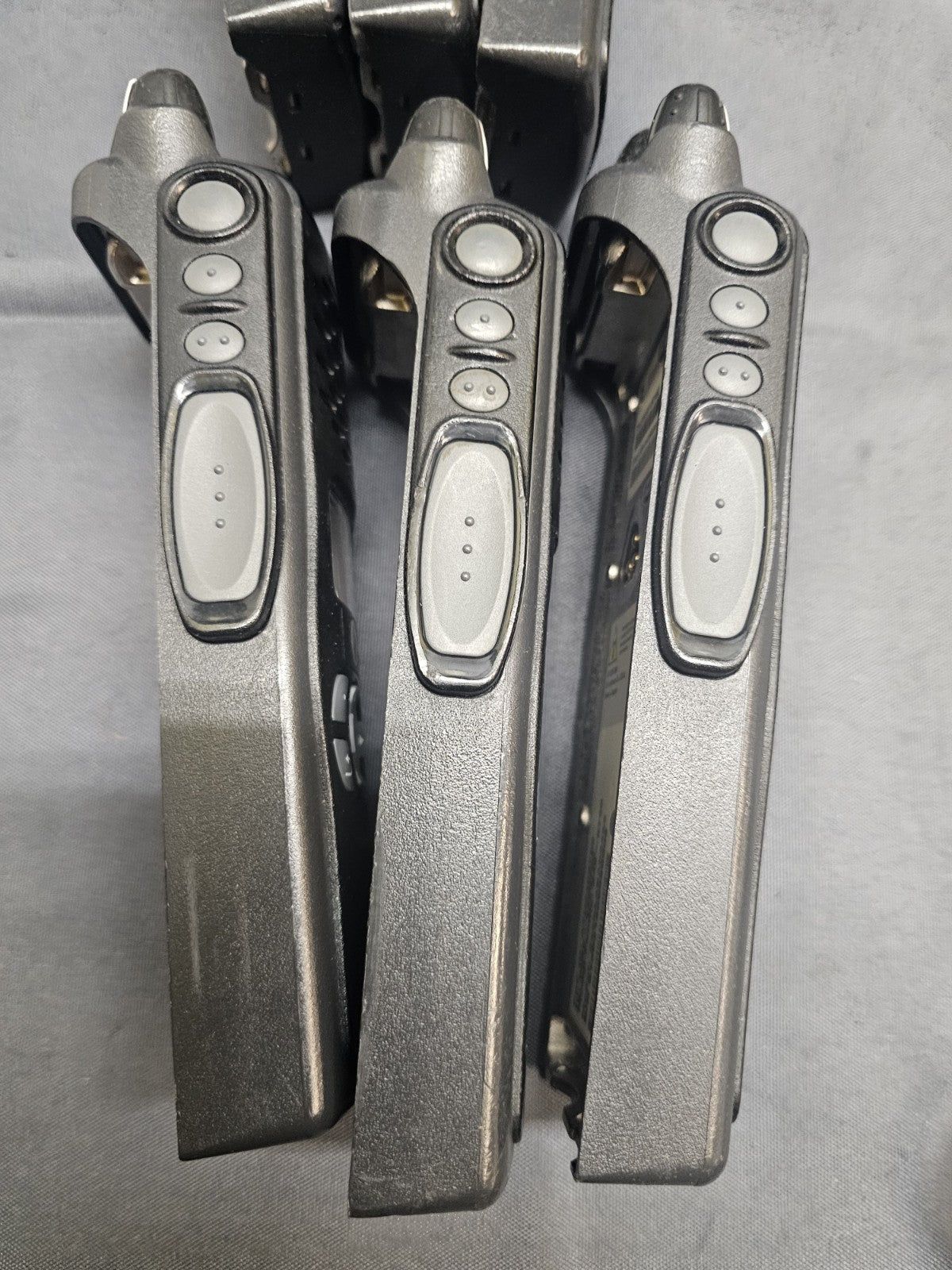 Lot of SIX. Wiped and ready for your programming. No passwords or ASK. Good used condition. Includes six radio, four antennas, six holsters, six bank charger, and six used batteries. THE INCLUDED 4 ANTENNAS ARE THE 800mhZ VERSION AND NOT THE DUAL BAND. We do not program. Multiple available.